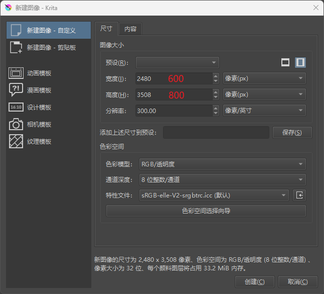 - 上方任务栏中点击 文件——新建图像,图像尺寸可以默认,也可以设置为以下提供的红字建议