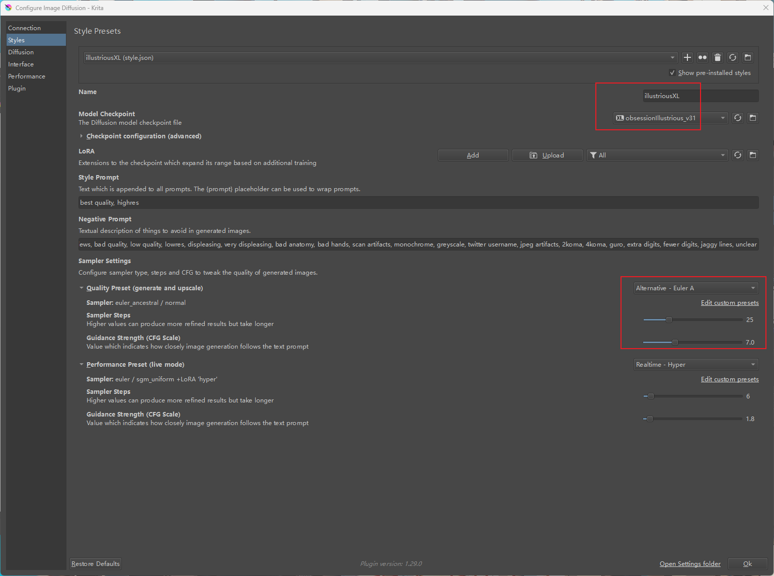 D:\Users\XXX\AppData\Roaming\krita\ai_diffusion\.server\ComfyUI\models\checkpoints点击设置,新建 Style Presets 样式预设