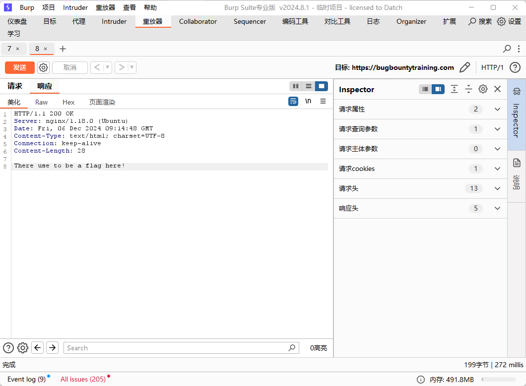 🆗,现在我们就可以看到响应结果不一样的页面了,拦截出现了问题