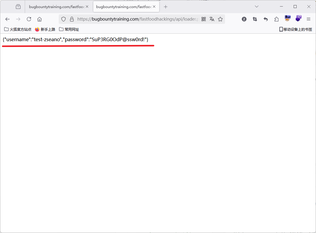 Oh God!通过访问 https://bugbountytraining.com/fastfoodhackings/api/loader.php?f=/generate-credentials 得到了一个测试账户 {"username":"test-zseano","password":"SuP3RG0OdP@ssw0rd!"}
