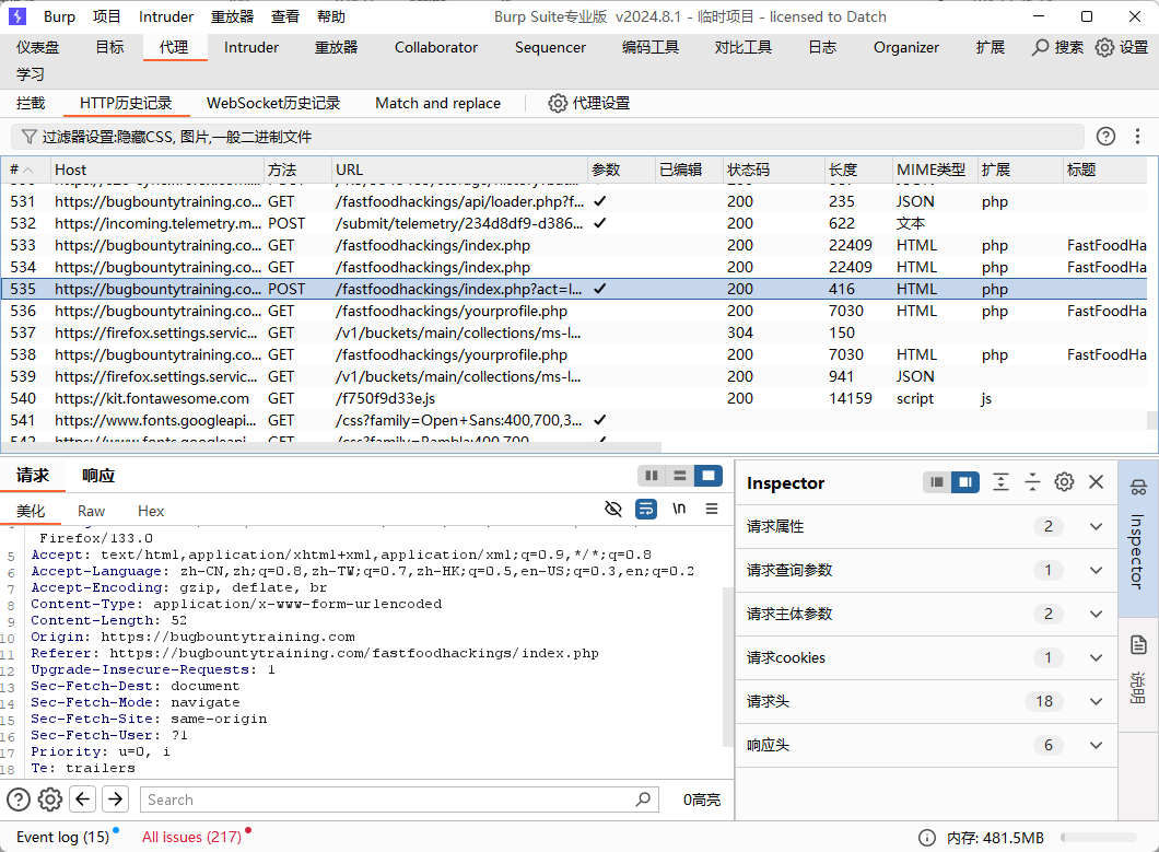 浏览器记得打开 Foxy Proxy 插件,避免错过关键包